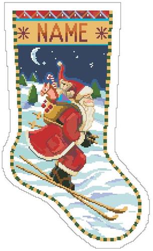 Skiing Santa Stocking Cross Stitch Pattern