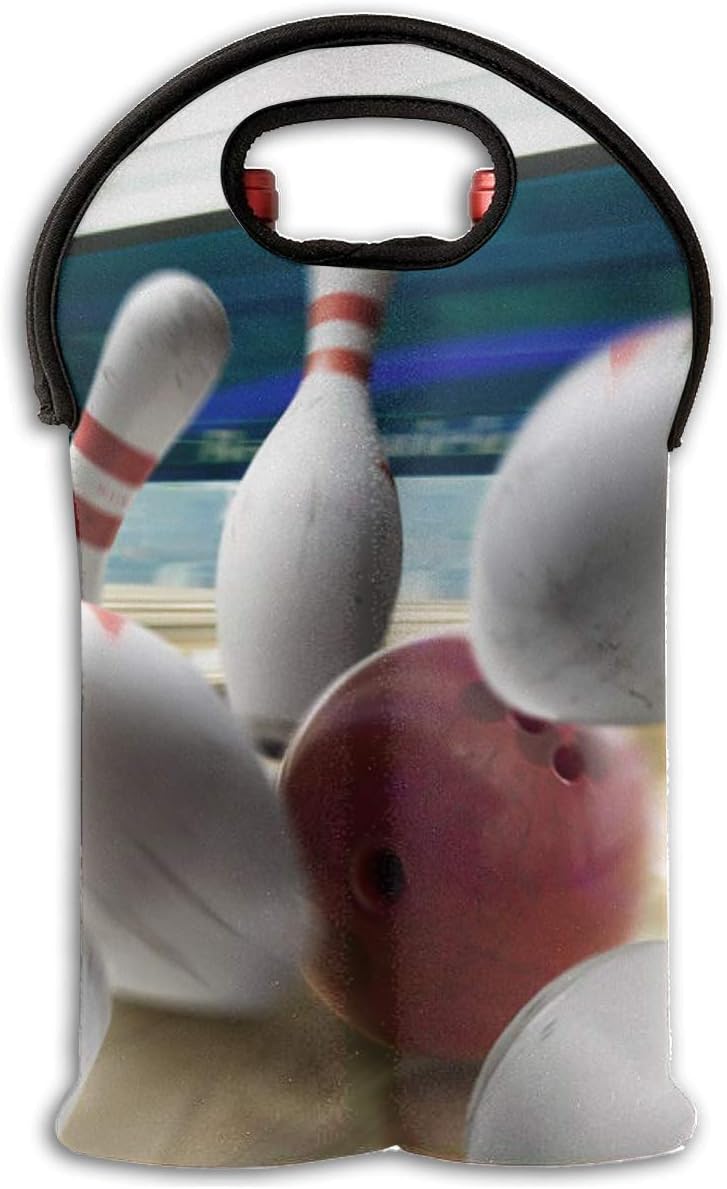 Amazon Com Bowling Ball And Skittles 2 Bottle Wine Carrier Tote Bag Traveling Wine Water Bottle Handbag With Carry Handle Two Bottle Drinks Beer Holder Bar Tools Drinkware